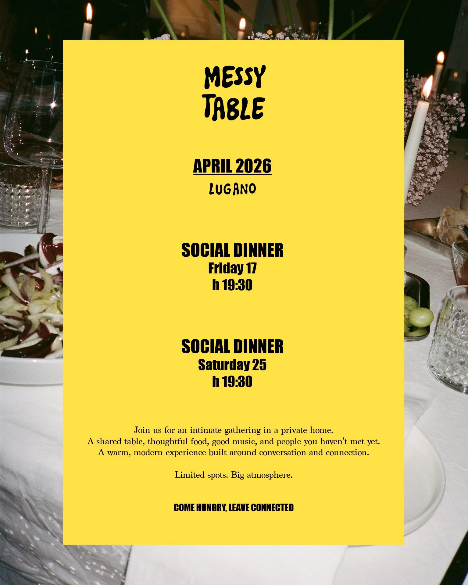 Messy Table is a series of intimate dining experiences created to bring people together in a natural and meaningful way.
